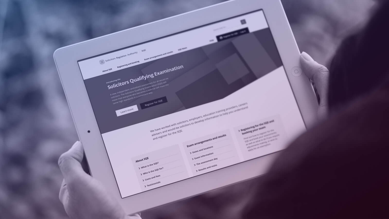 Initially creating, and now maintaining, a brand new SQE website and online booking portal, candidates are able to register for an SQE account, before booking to sit assessments and accessing results.